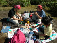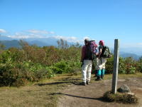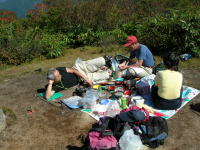 あまりにも良いお天気に、山頂で長居する事になったが、「もうちょっと、ビールが欲しかった。」が、「これだけの時間があれば、足の速い者が、下まで買いに行って来れたのではないか?」と盛んに悔しがっていたが、「チョット足りないくらい良いのです。」と慰められていた人は誰であったか? しばらくしてから、団体さんがやって来た。その中に、今春、細蔵山や犬ヶ岳にご一緒した事のある福井の黒川女史が、おられるのにはびっくりした。「宮ちゃんから、お誘いがかからなかったので、皆と天蓋山に来た。」とか・・・・・