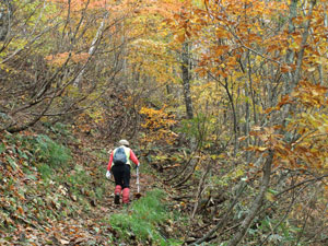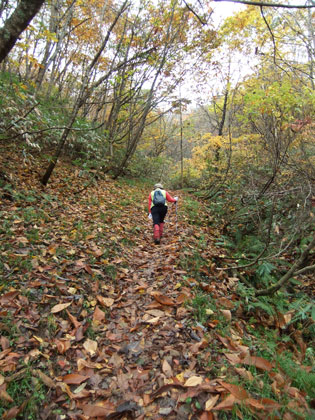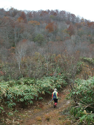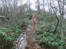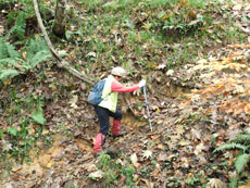| a.m.11:05 滑りやすい急登場面で・・・ |