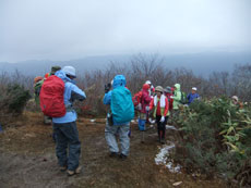 | 「山ノ神リハビリ山行」 であったが、山頂は雪が舞い寒かった。 |