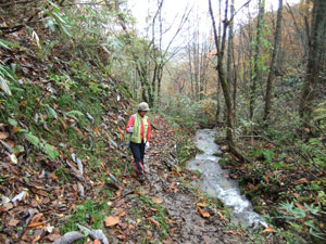 | 良い雰囲気の中を・・・ | a.m.10:44 小さな沢沿いを、そして、渡る。 |