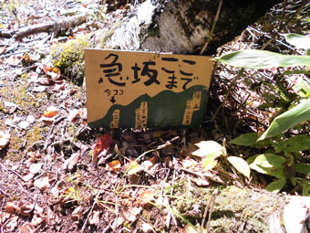 「急坂ここまで」 標高1,300m |