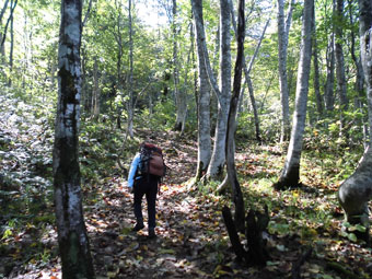 白樺林を行く。 |