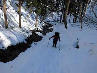 沢沿いを行く。 |