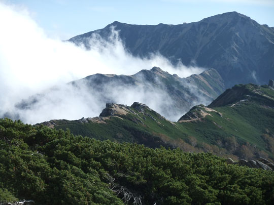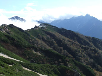 | 翌日行く、大天井岳への稜線を眺めて・・・・ |