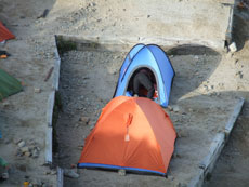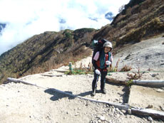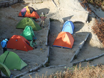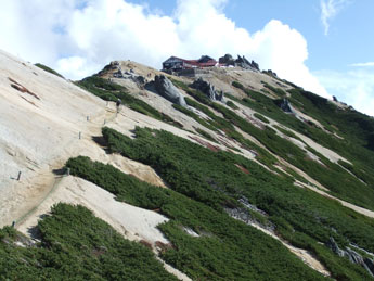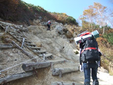 | 階段と鎖があります。 | 燕山荘が間近に・・・ | p.m.1:15 ようやくテン場に到着。 |