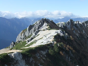 | まだ出掛けた事のない「北燕岳」 | 6年前に長勢君と出掛けた「餓鬼岳」 |