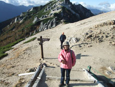 | 要塞のように見えるのは燕山荘 | 燕岳です・・・・ | 荷が肩に食い込み、ちょっと一服です。 |