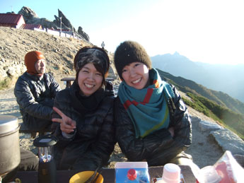 | 遠藤さん(左)と糸賀さん(右) | 夕日をいっぱい浴びて・・・ |