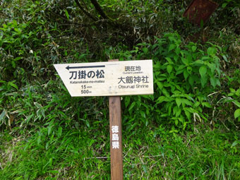 | 刀掛の松への標識。 | 大剣神社参拝。 |