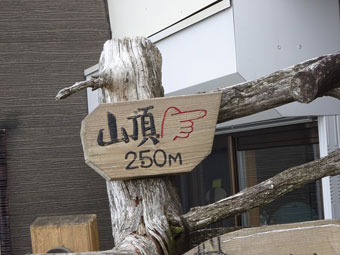 | 剣山頂上ヒュッテ | 山頂まで250mの標識。 |