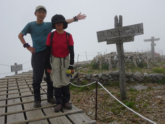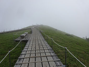 | 山頂まで木道が続く。 | 何だか味気ない剣山頂上。 |
