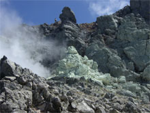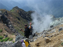 相変わらずの噴煙!山頂の人が見えた。 |