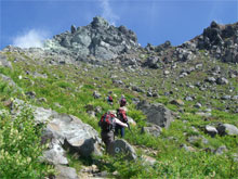 | 岩峰をトラバースし山頂へ。 |