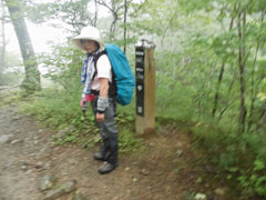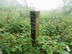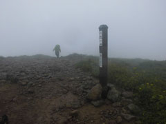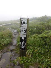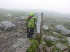 雨も風も強く、山頂にはいたたまれなかったので、写真だけを撮って、すぐに下山する。