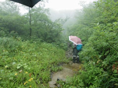 登り始めは、雨が降っていなかった。 |
