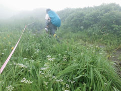 山頂近くに、シオガマ・ウスユキソウなどが、辛うじて咲いていた。