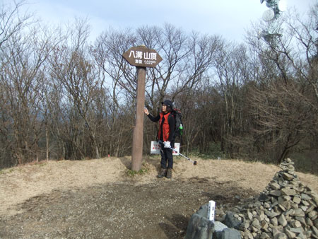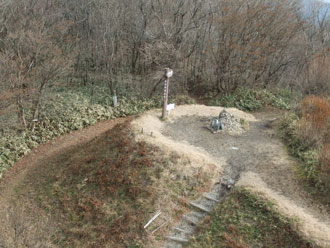 | 三角点と標識のある山頂で・・・ |