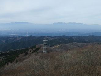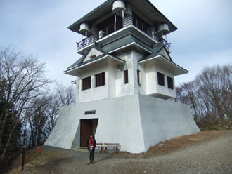 山頂には、お城のような展望台があった。入館料なるものが必要であるとの事前情報を得ていたが、「12月の平日に、そのような係員がいるだろうか?」 と恐る恐る近付いてみたが、人気はなく、入場料などの記述もなかった。三角点のある山頂からは、展望が望めないだけに、無人の展望台に足を入れた。建物でいうと3~4階建程の高さだけに360度視界があった。でも、馴染みのない山だけに、特別有名な山々しか分からなかった。
