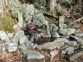 地図とインターネットの情報だけでは、要領を得ていなかったが、8キロの林道を6キロばかり車で上がり、そこから歩く事にした。麓から歩けば4時間程掛かるらしいし、実際歩かれているのかも分からなかった。また、山頂付近まで車を乗り入れるのもどうかと思い、「八溝川命水群コース」 と 「日輪寺コース」 を周遊するものとした。標高差は250mくらいで、所謂ハイキングコースである。命水コースの水は、勢いよく流れているところは少なく、ちょっとがっかりであった。
