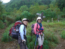 | 行者小屋まで、まだ一息ある。 | 気分の良い林間を行く。 | 行者小屋で一服。 |