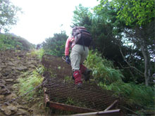 | 阿弥陀岳への分岐。 | 行者小屋を振り返る。 | 文三郎尾根には鉄網の階段が・・ |